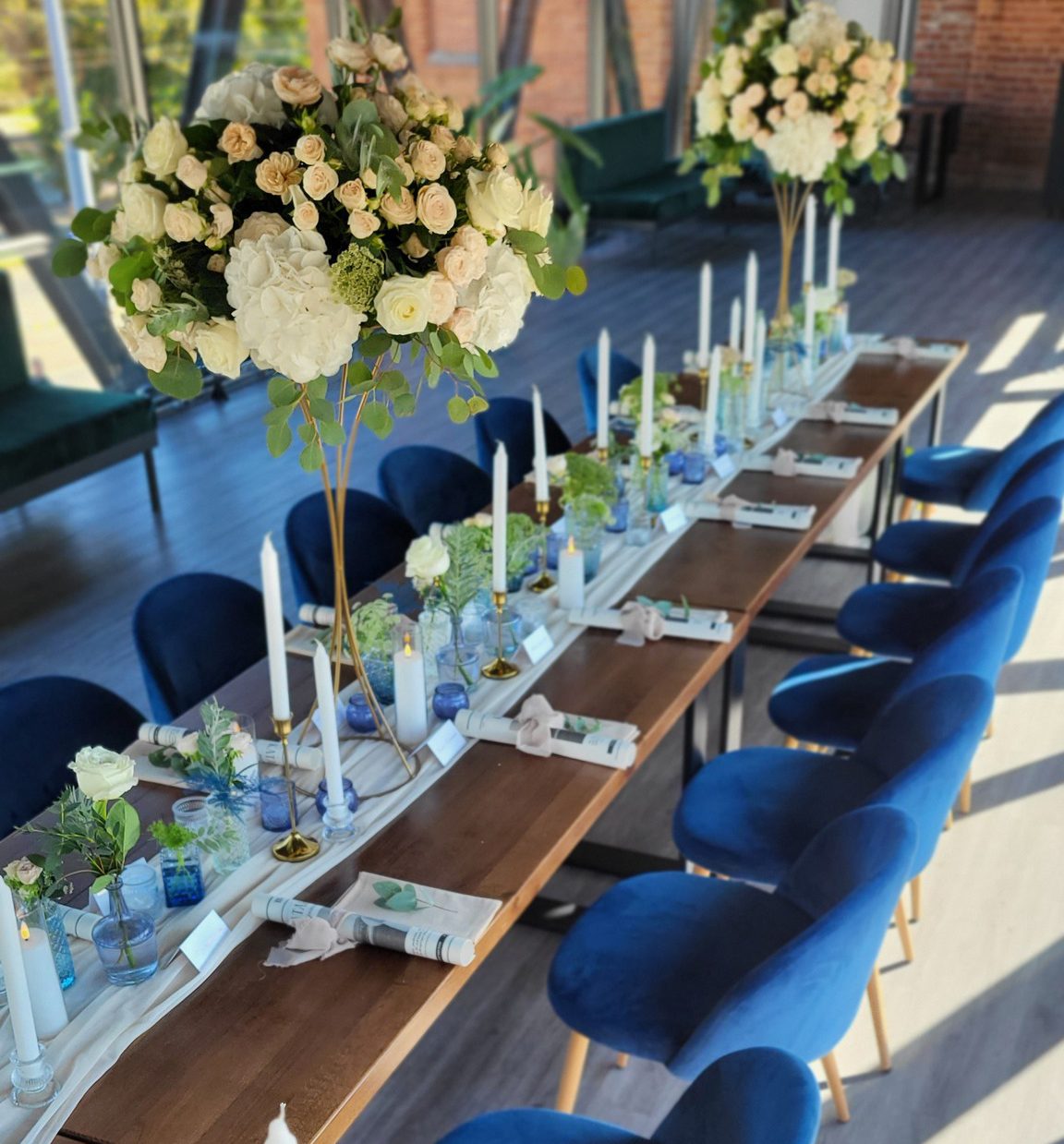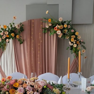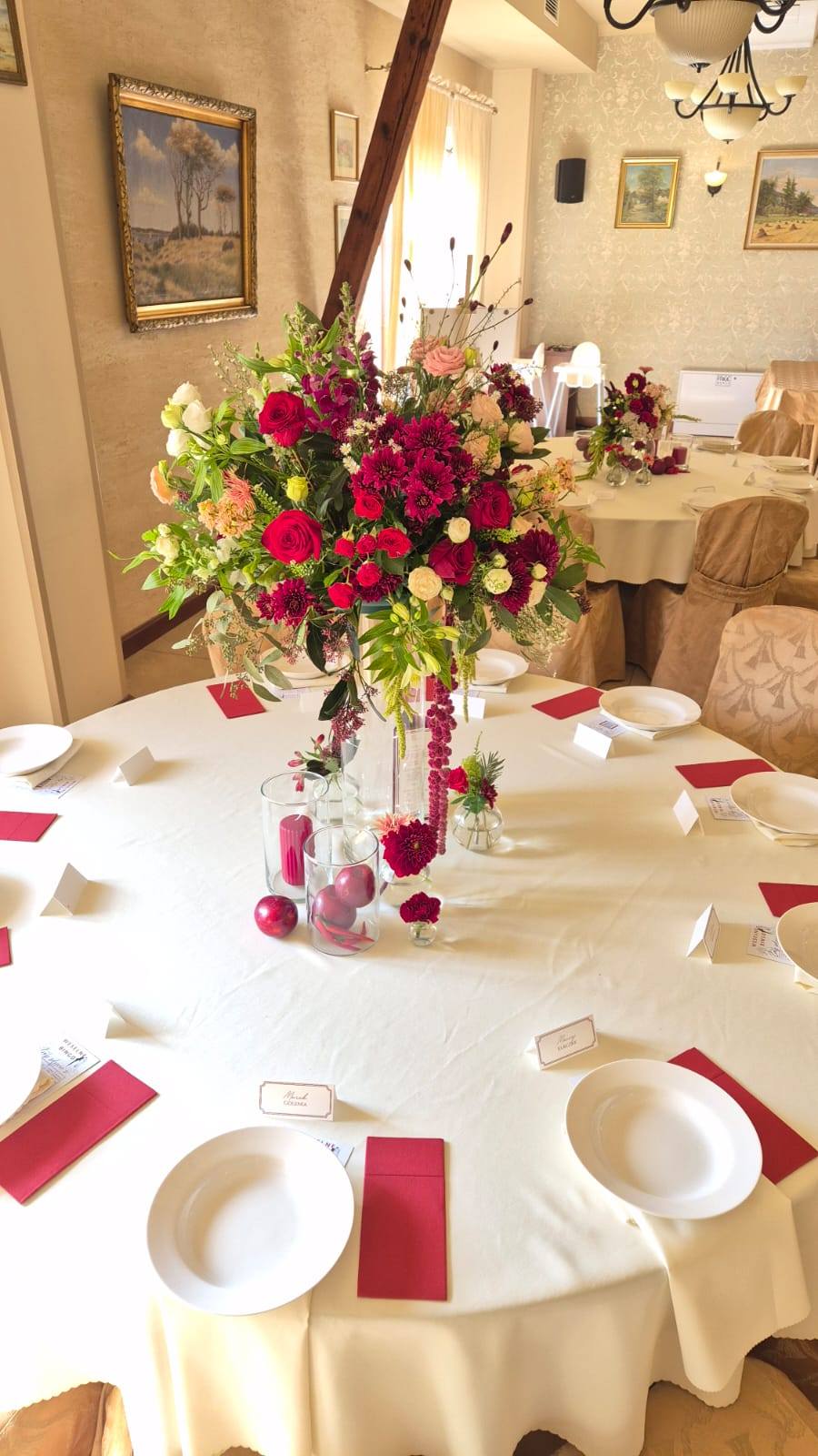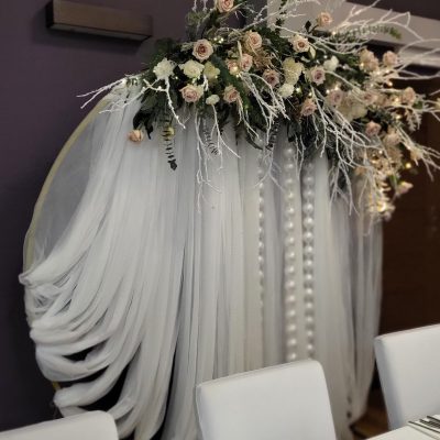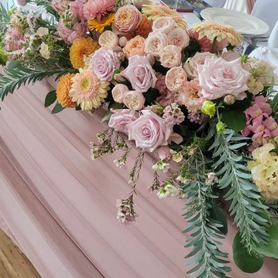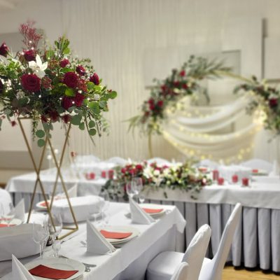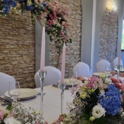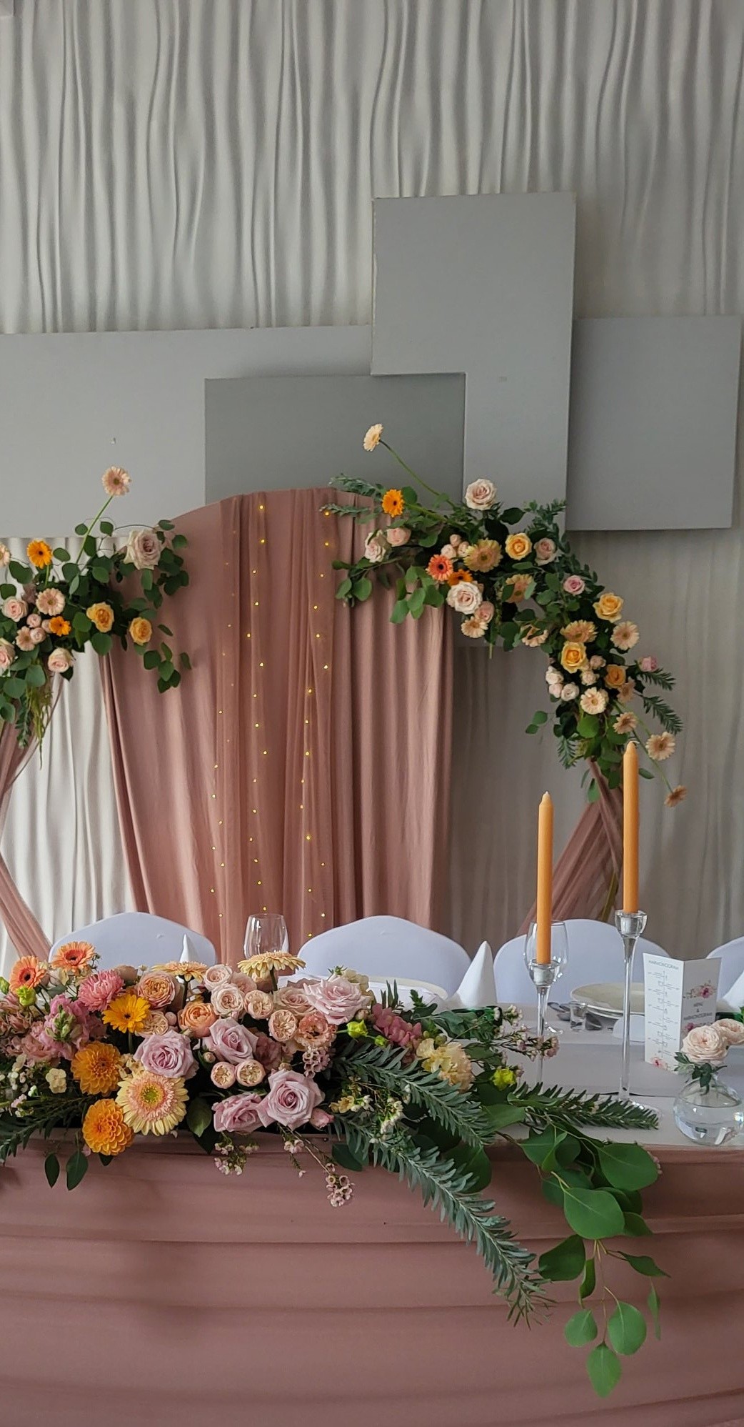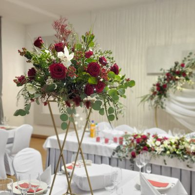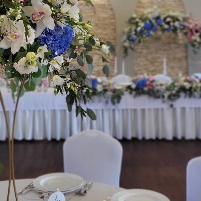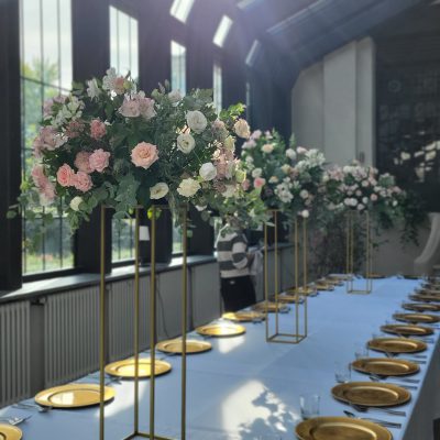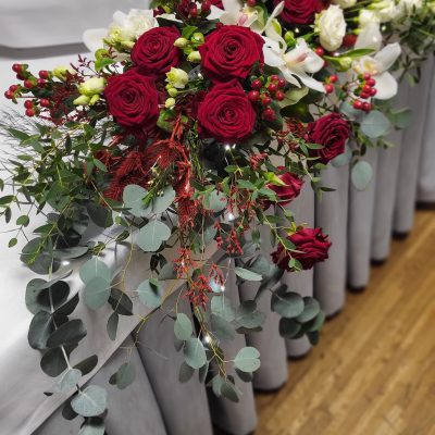 - 6 Szpilek – dekoracja kwiatowa stół państwa młodych