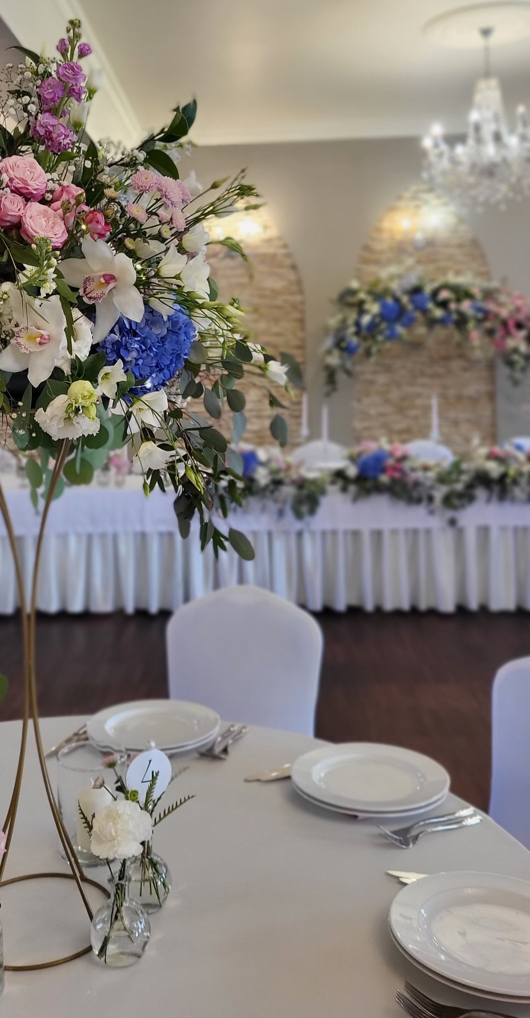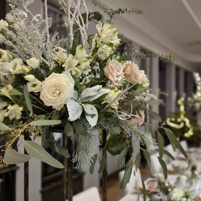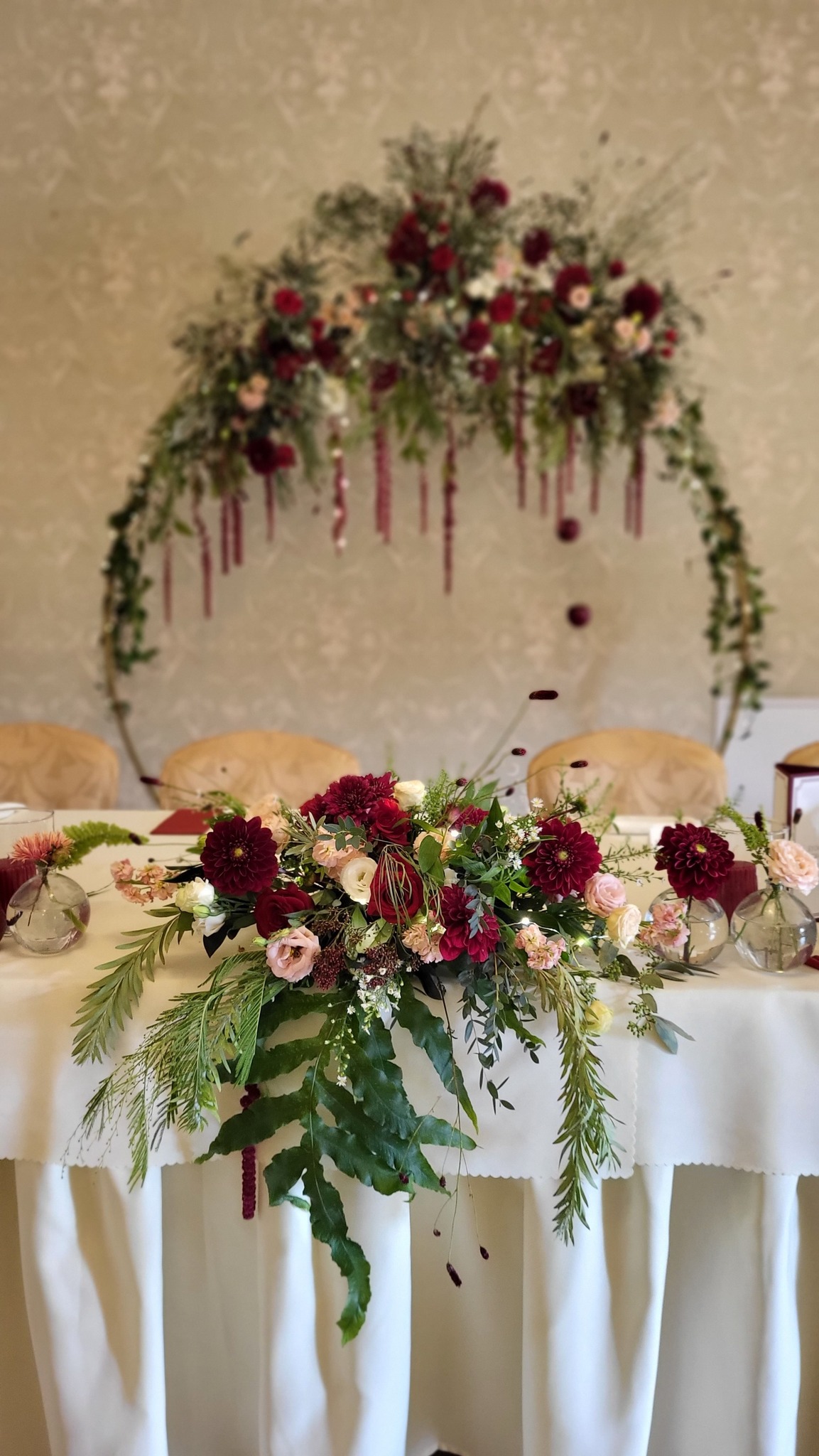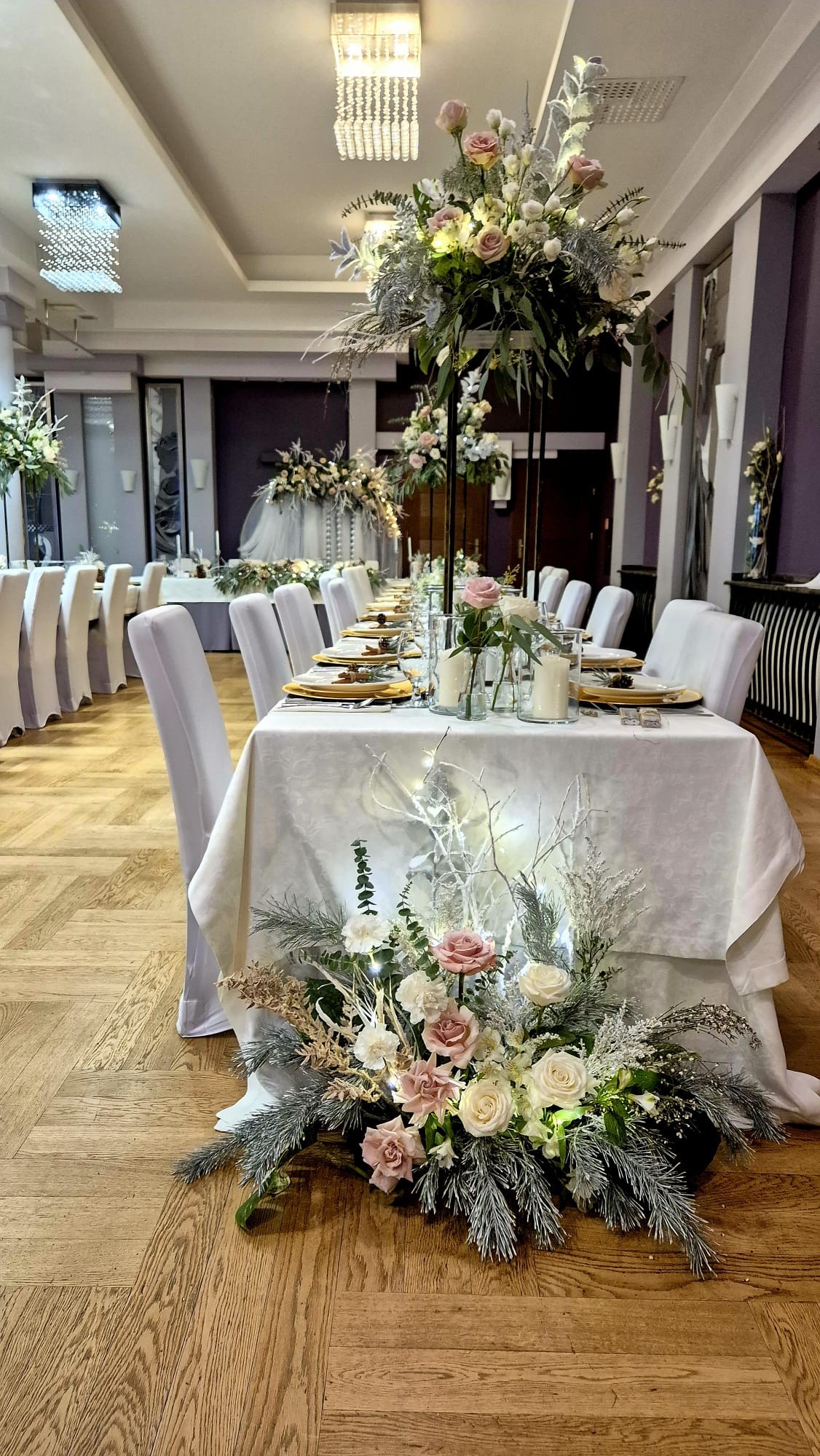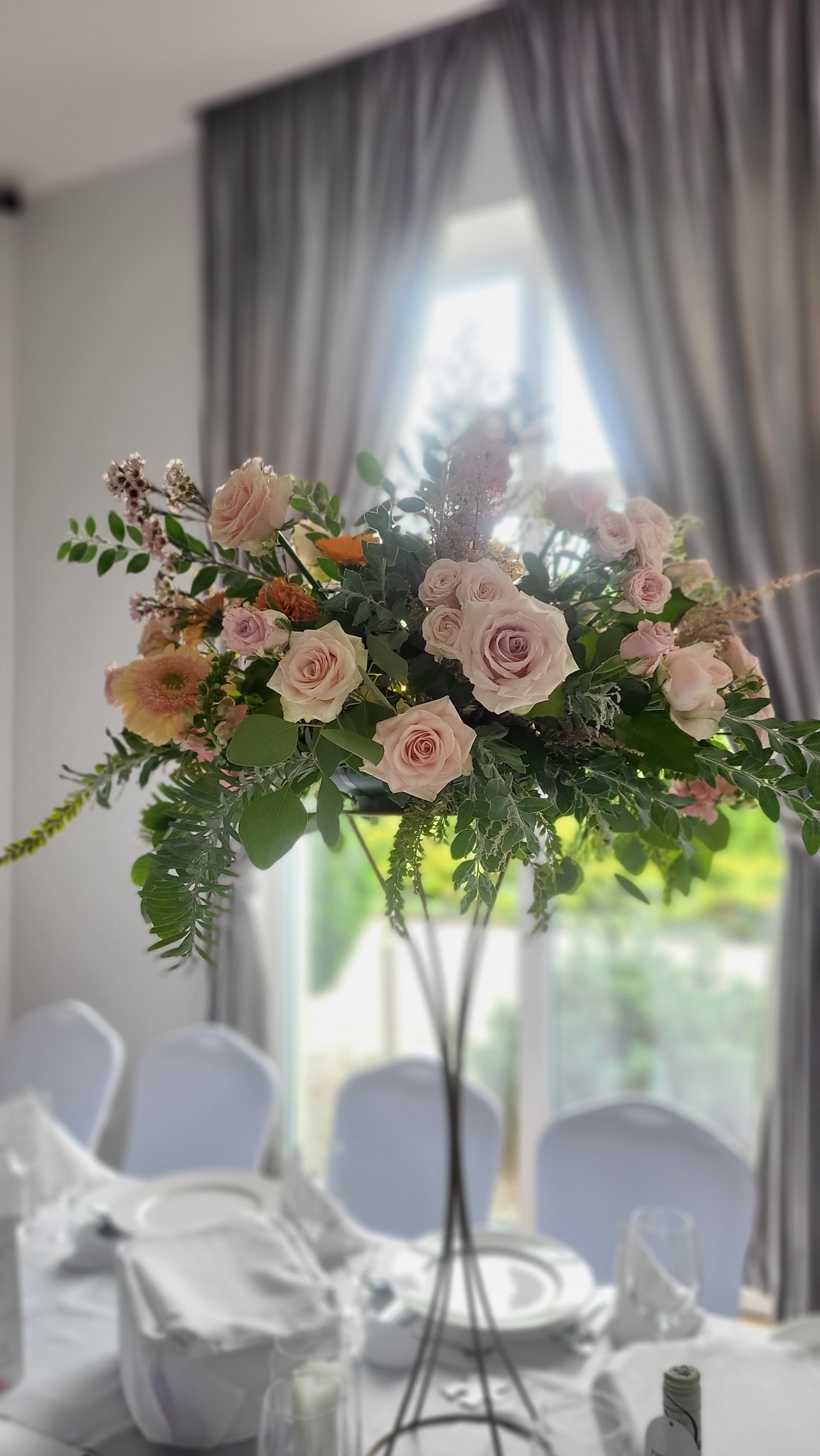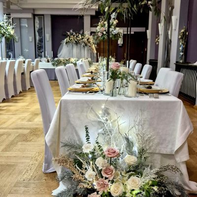 - 6 Szpilek – dekoracja kwiatowa stół państwa młodych