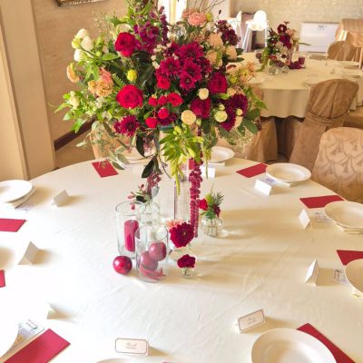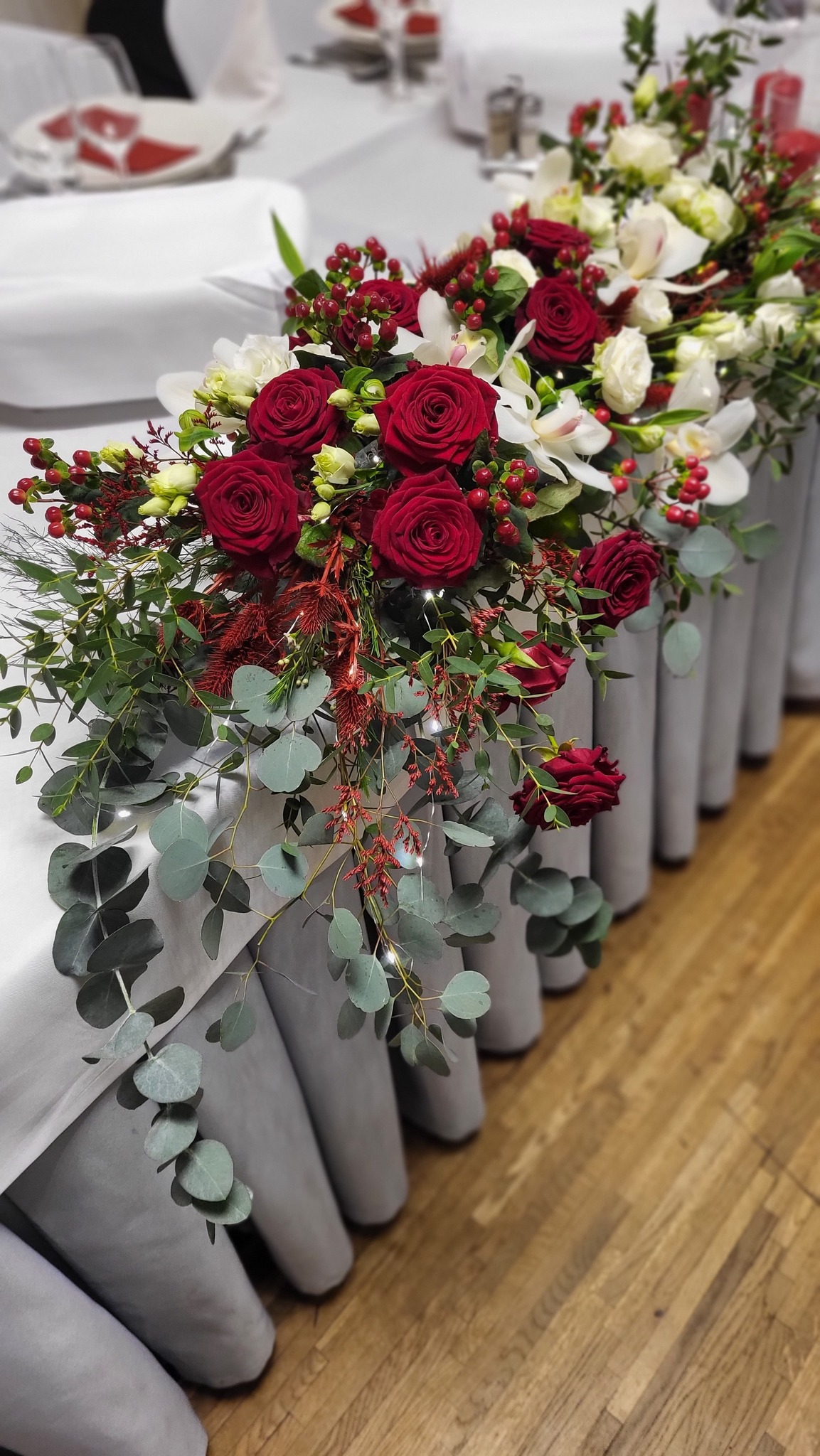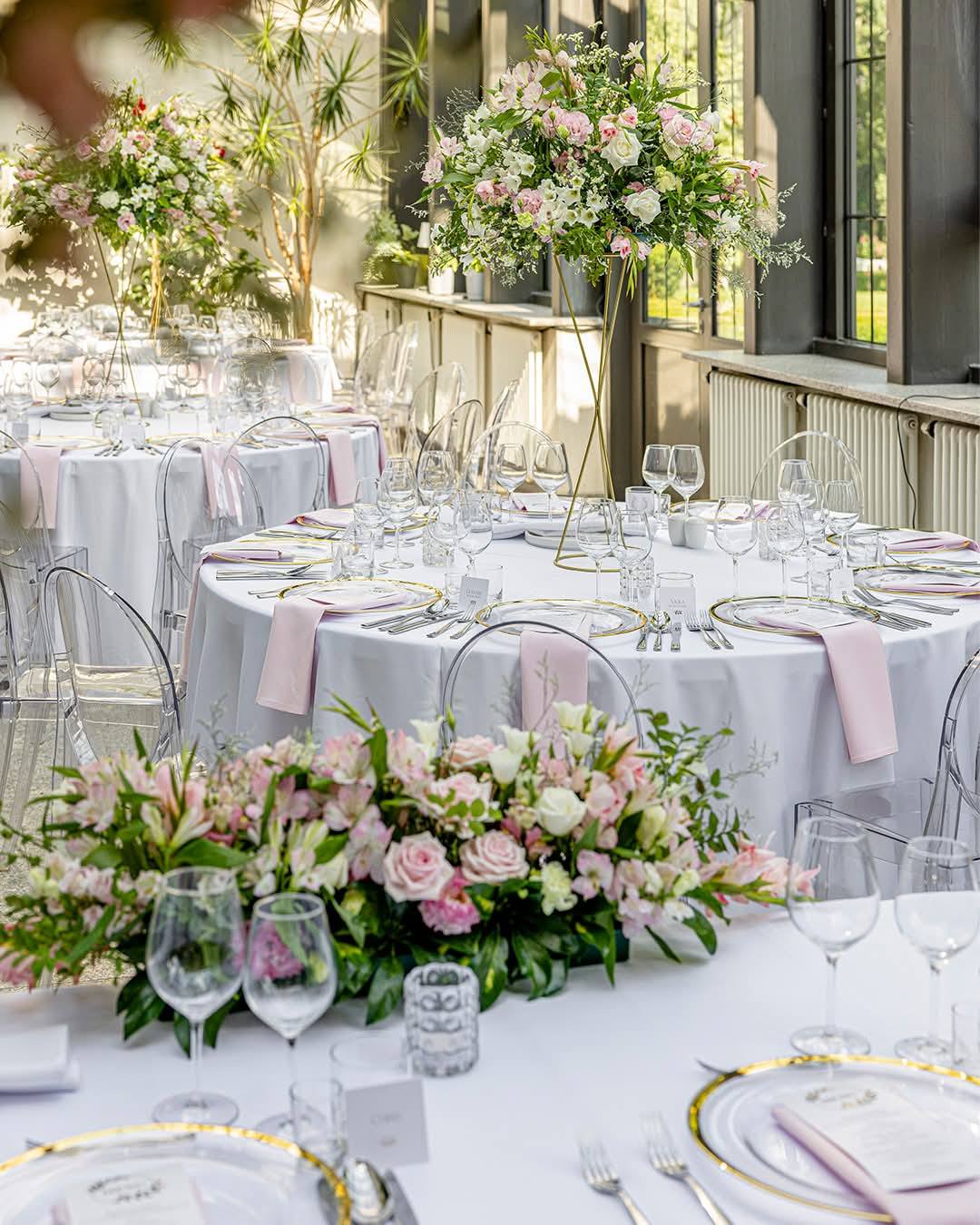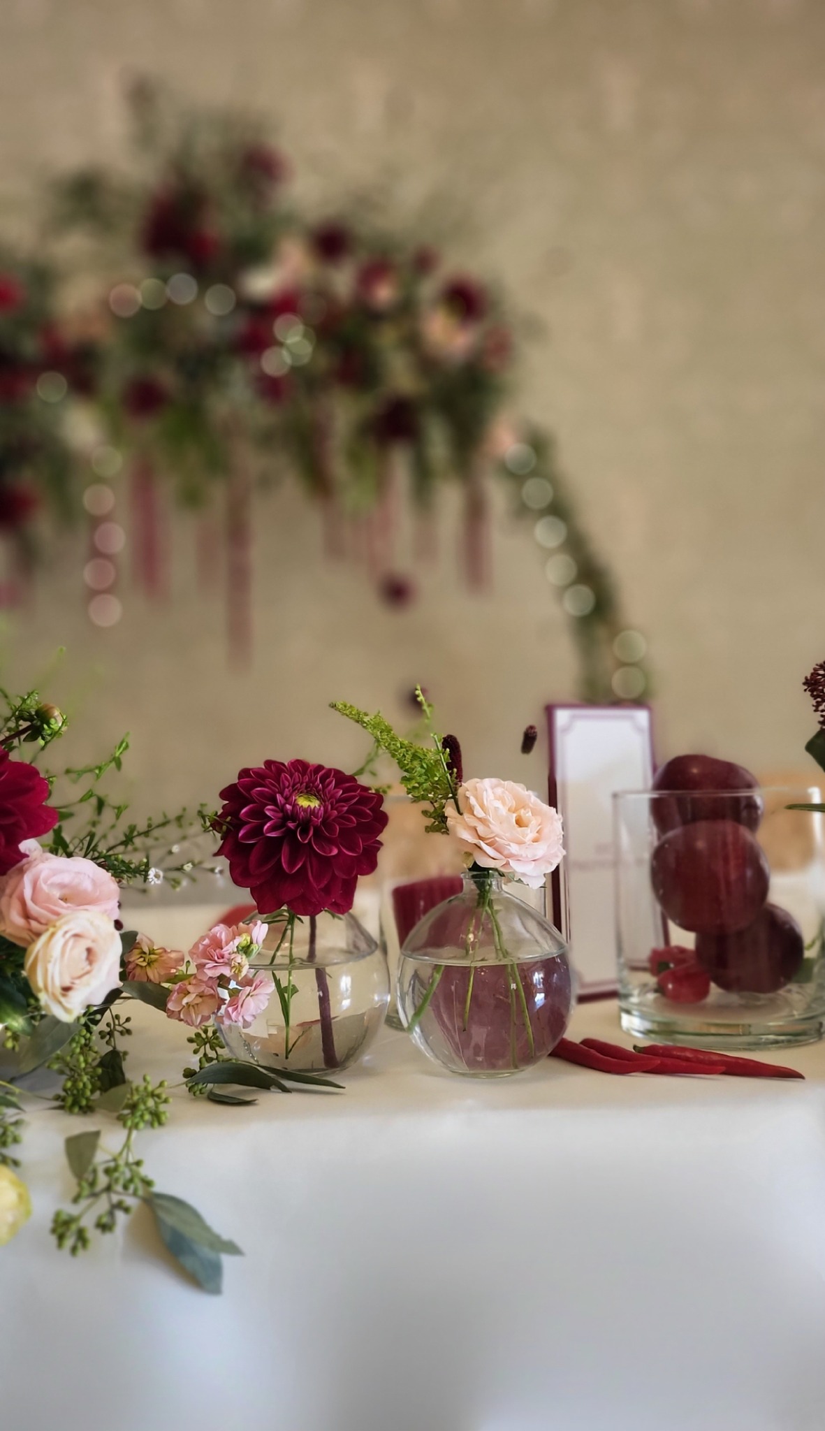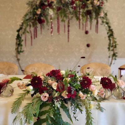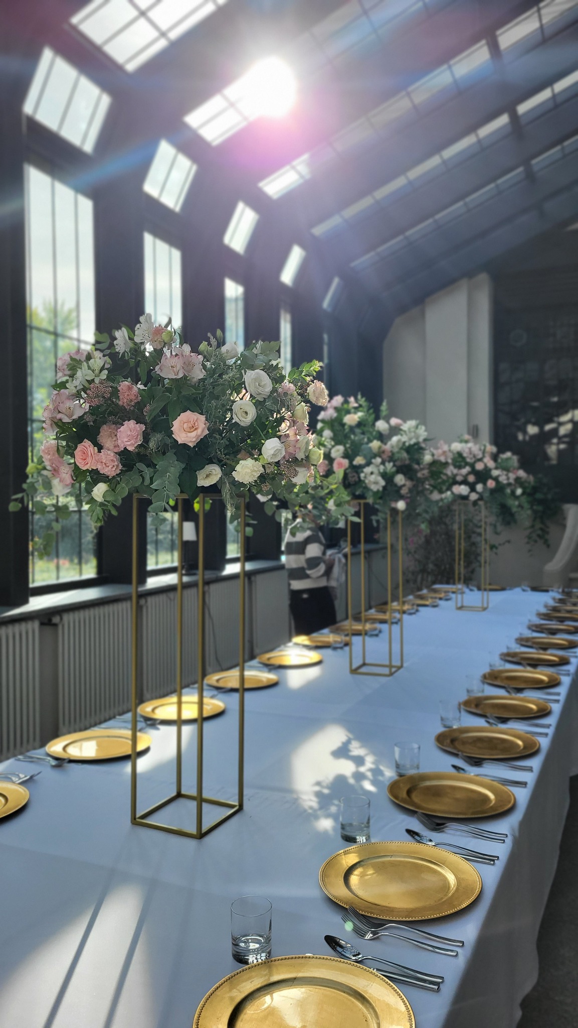 - 6 Szpilek – dekoracja kwiatowa stół państwa młodych