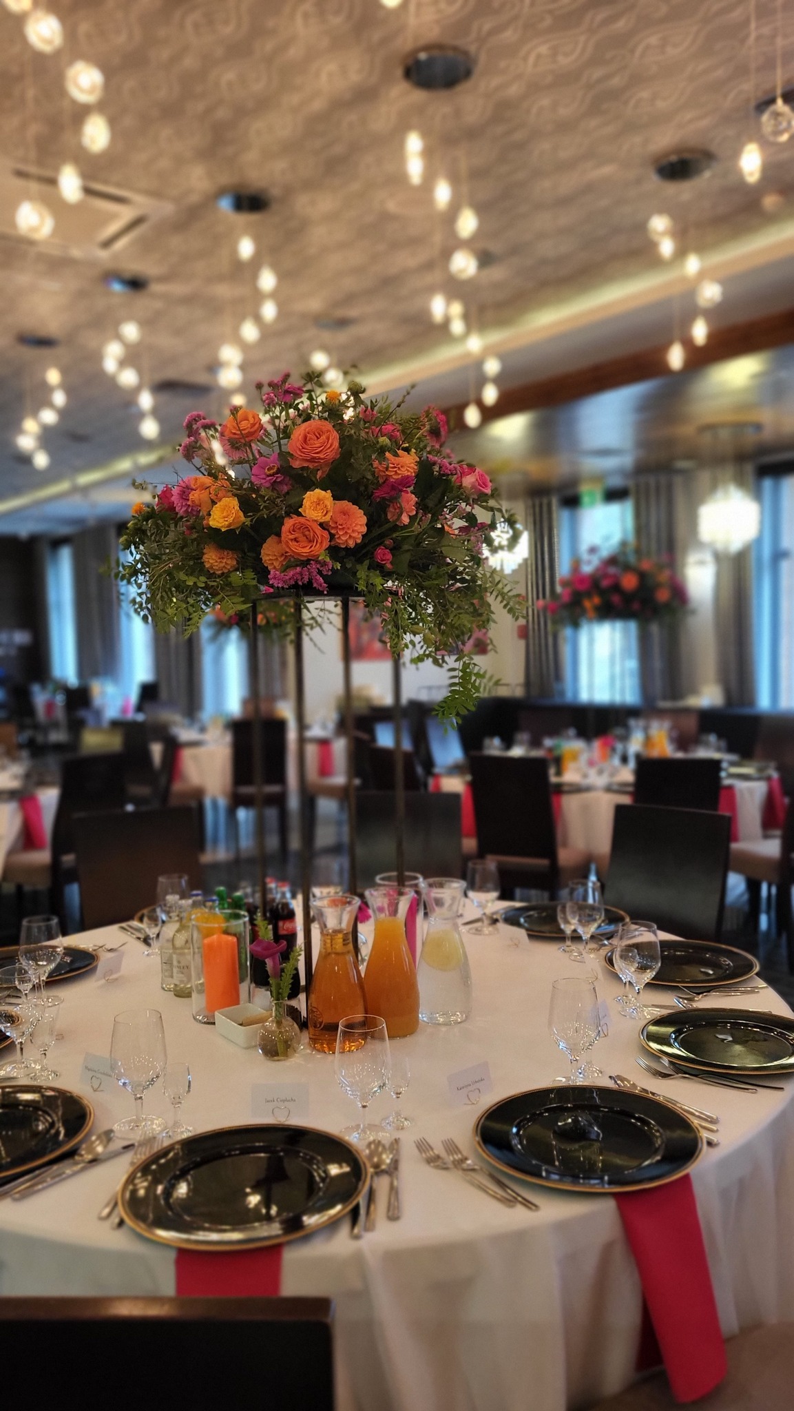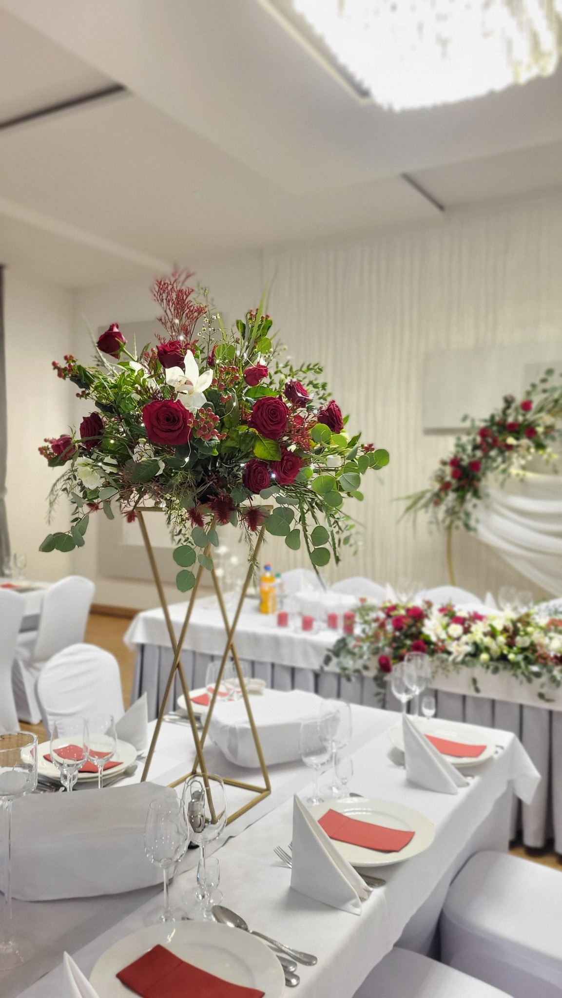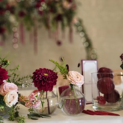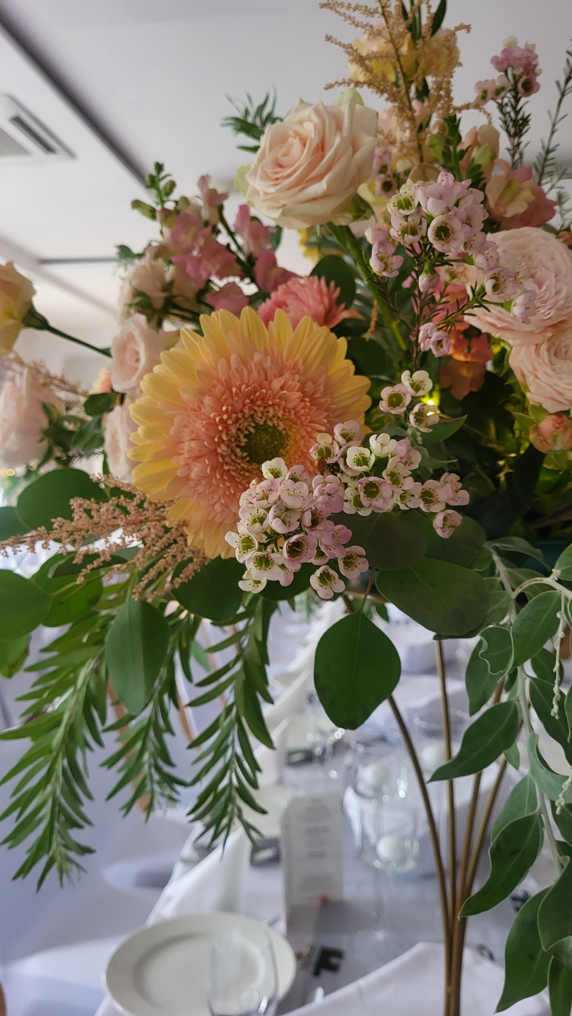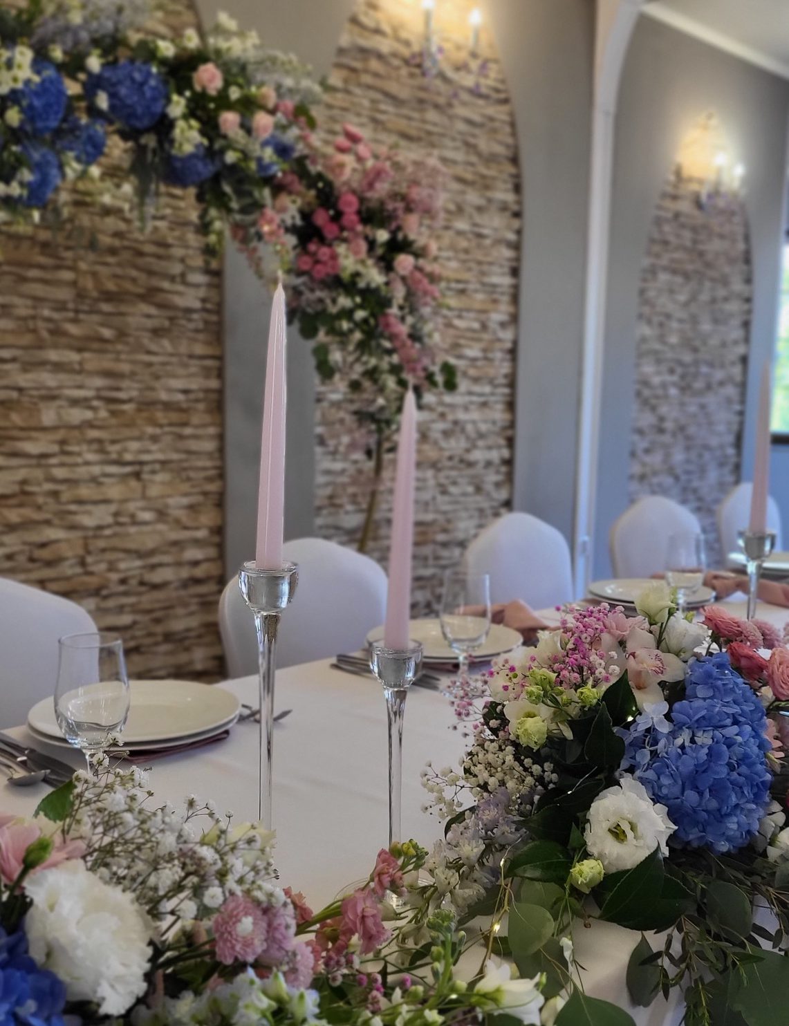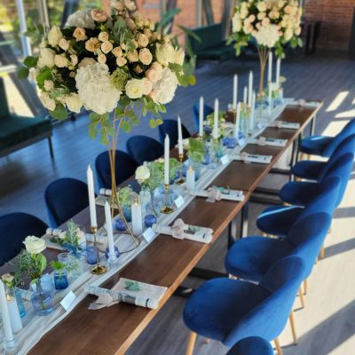 - 6 Szpilek – dekoracja kwiatowa stół państwa młodych