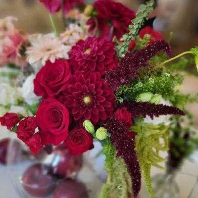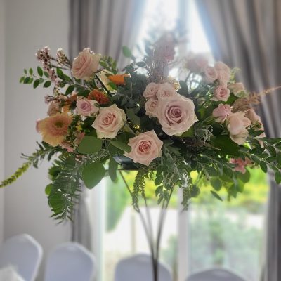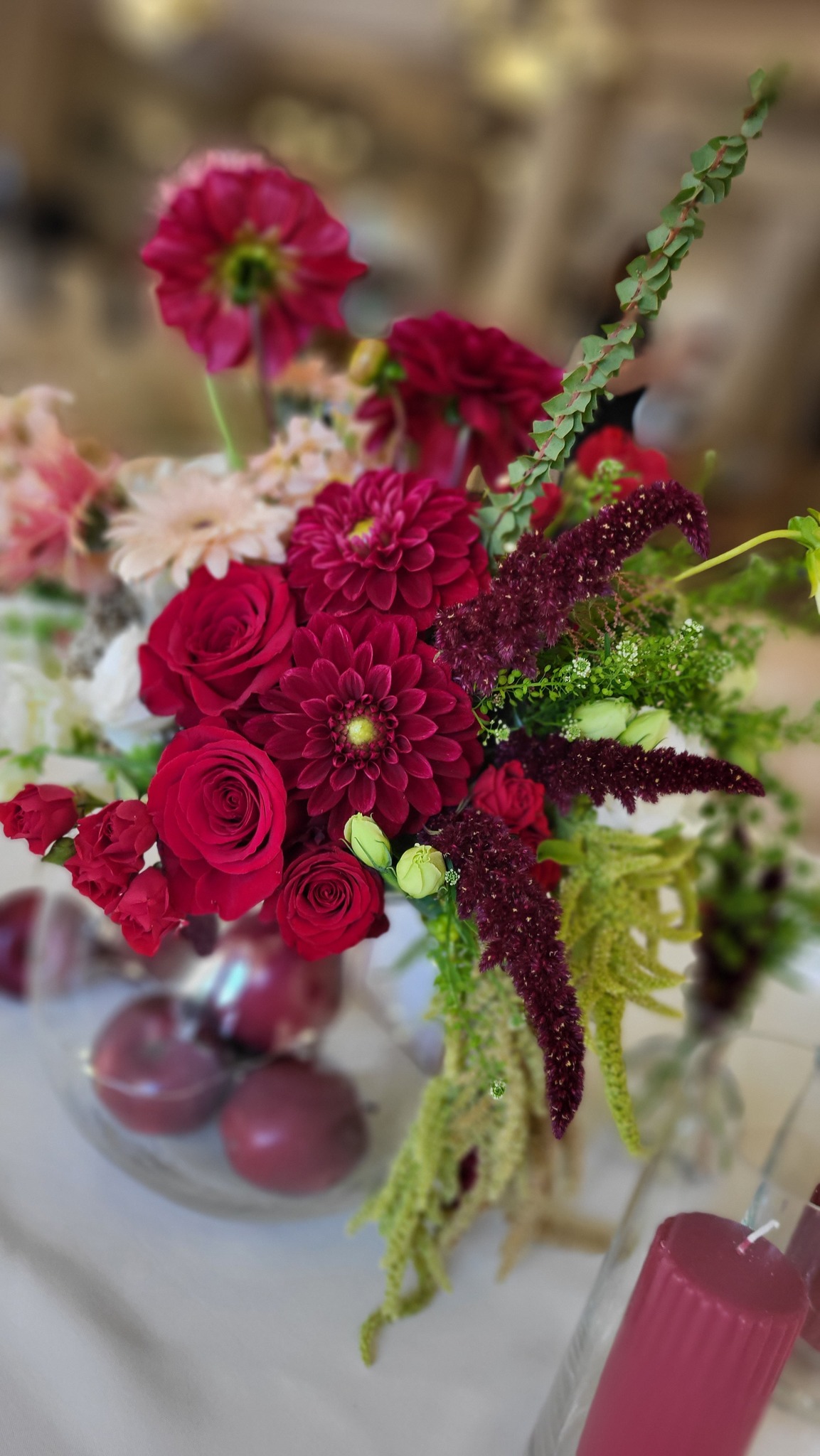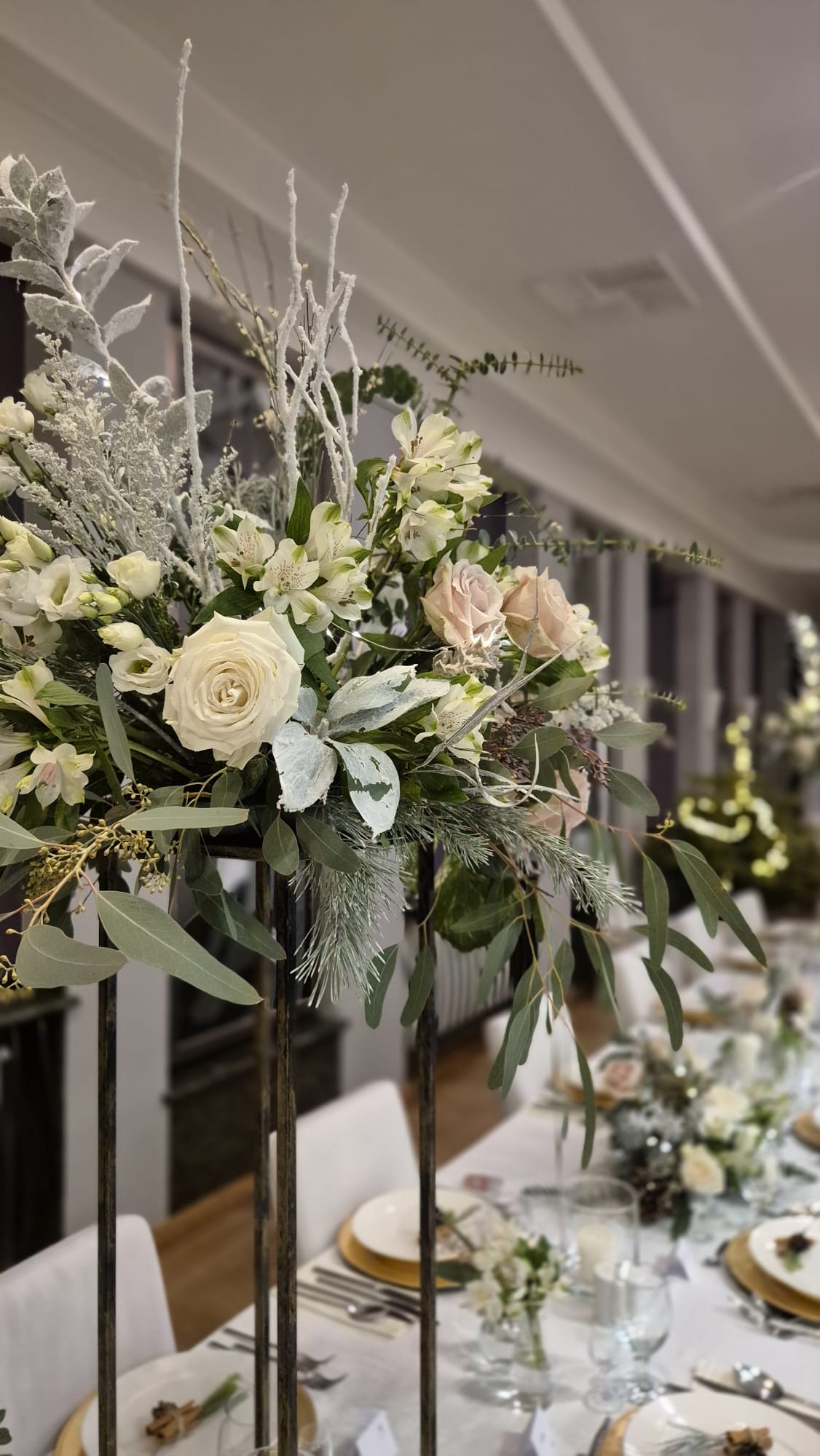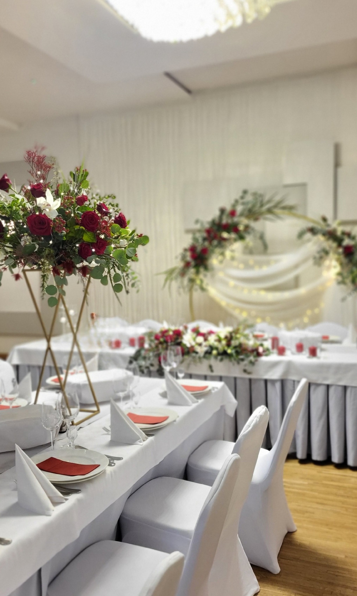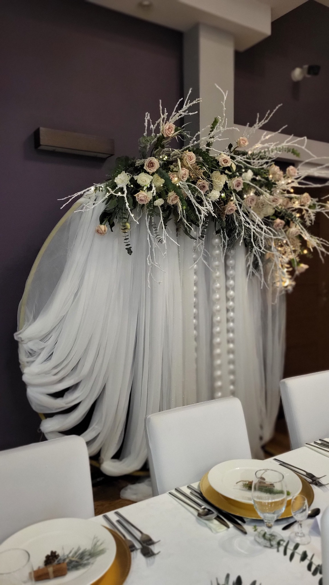 - 6 Szpilek – dekoracja kwiatowa stół państwa młodych